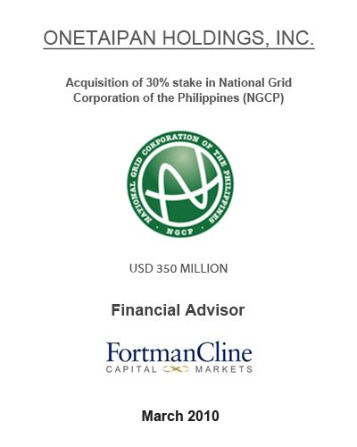 Fortman Cline has assisted the Philippines’ prominent Sy Family in diversifying their business holdings into energy and utilities. In 2010, it advised Henry Sy Jr. to acquire a 30% stake in National Grid Corp., the nation’s transmission company, for US$350 million. In 2012, it advised the Sy Family’s holding entity, SM Investments Corp., to acquire a 60% stake in Chevron’s geothermal assets in the country.