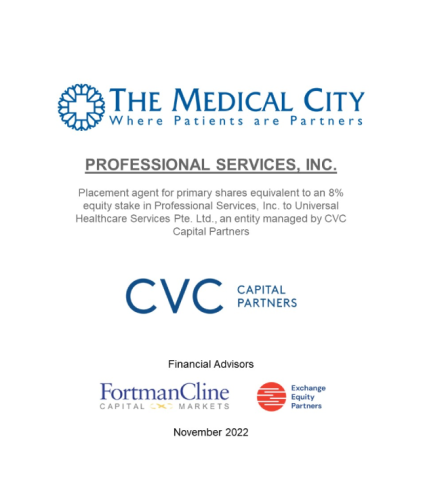 Fortman Cline advised The Medical City on the control sale to CVC Capital