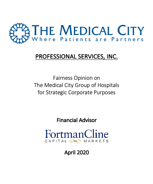 FCCM Advised on the Fairness opinion on The Medical City Group of Hospitals for strategic corporate purposes.