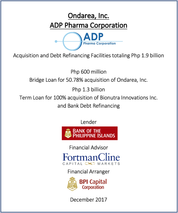Fortman Cline advised the Pascual family in securing a Php 1.9 billion loan facility