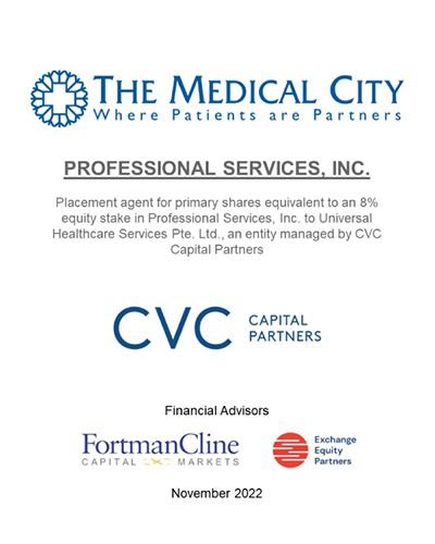 Placement agent for primary shares equivalent to 8% equity stake |